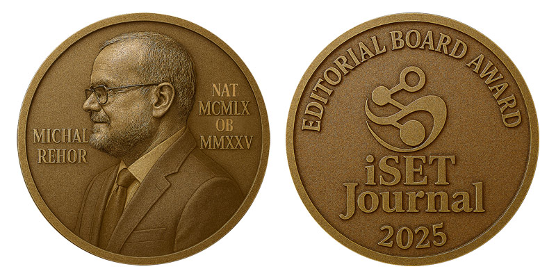 To advance excellence in scholarly publishing, the iSET Journal Editorial Board announces the Editorial Board Award, first conferred in memoriam to Dr. Michal Řehoř in recognition of his significant contributions to scientific knowledge. This prestigious distinction will be conferred annually upon authors whose articles demonstrate the most significant advancement in scientific understanding. Citation metrics will be considered as an objective indicator of quality, excluding direct self-citations; however, the primary criterion remains the article’s substantive impact on the progress of research.